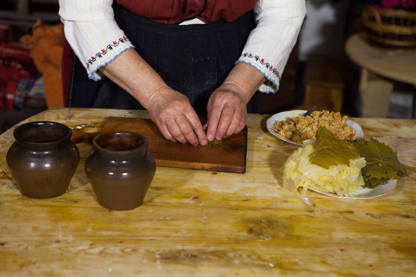 Doamna Maria Constantin din Văleni prepară sarmale. Toate fotografiile din acest articol au fost făcute de Roman Friptuleac la pensiunea „La Gura Cuptorului”.