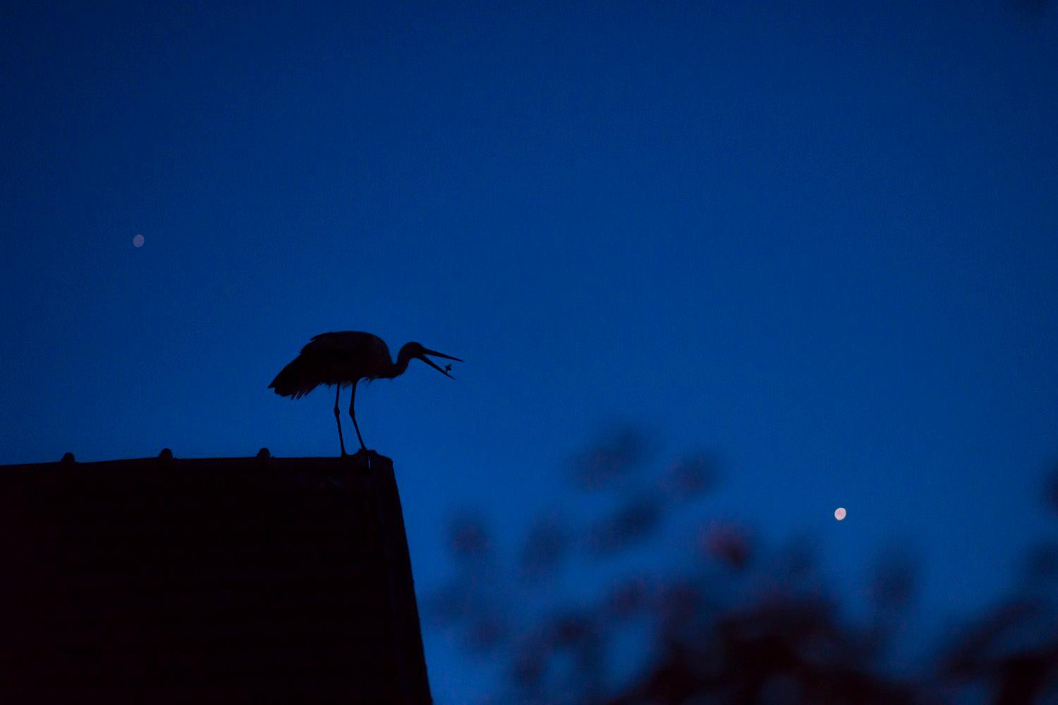 Barză albă pe o casă din Văleni. Fotografie de Victor Pictor