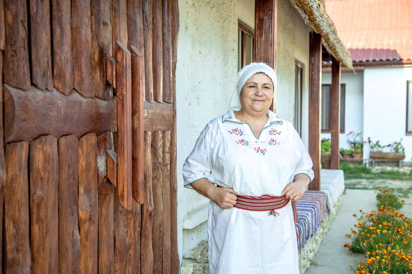 Doamna Vera Caminschi în curtea pensiunii. Fotografie de Dinu Soroțchi