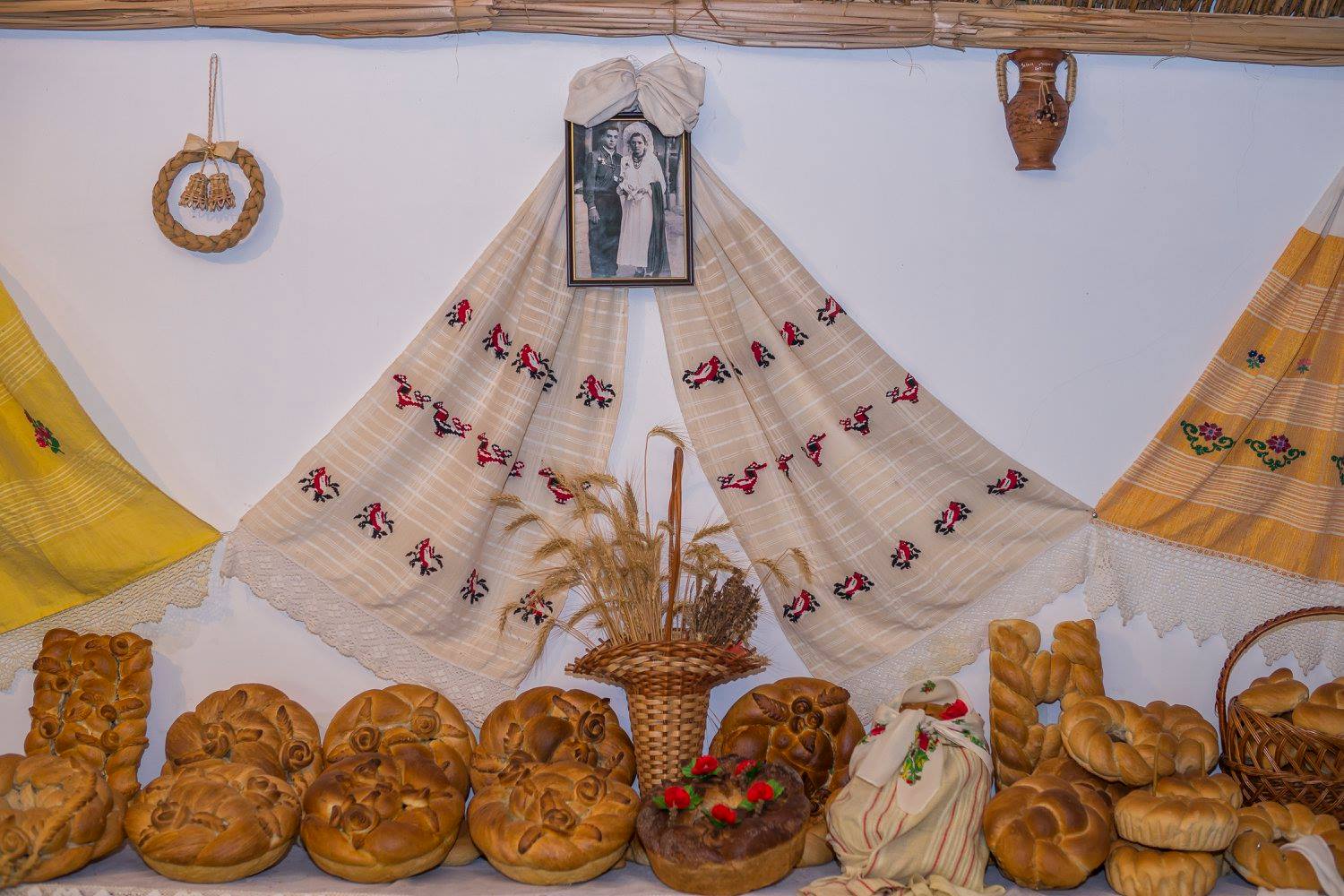 Ștergar pus la rama de fotografie, la Muzeul Pâinii din Văleni. Imaginea din ramă este de la nunta Eufrosiniei și a lui Nicolae Nastas din Văleni. Fotografie de Victor Pictor.