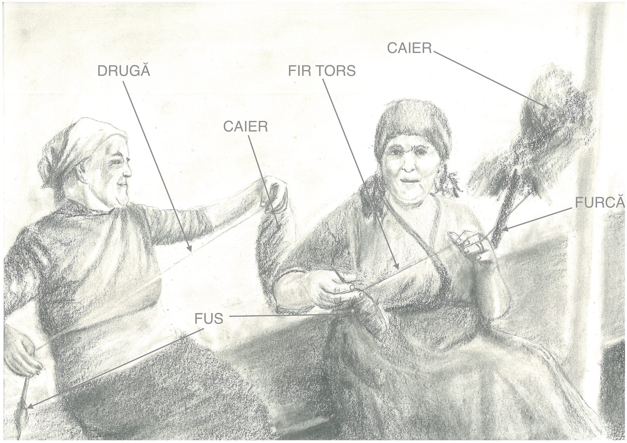 Mai jos am reprodus torsul doamnei Ștefana Chimineț din Văleni și îndrugatul doamnei Catița Pană din Slobozia Mare. De asemenea, am încercat să indicăm fiecare element care face parte din proces.