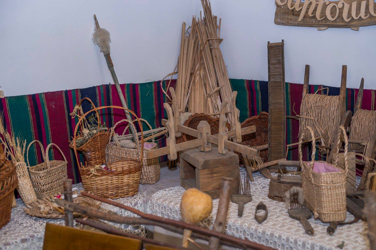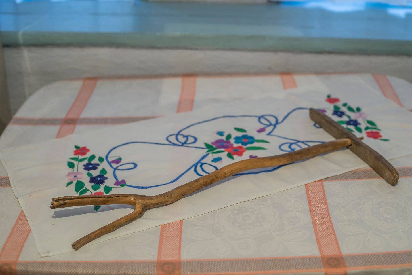 Furcă, fus și caier expuse la Muzeul Pâinii din Văleni. Fotografie de Roman Friptuleac