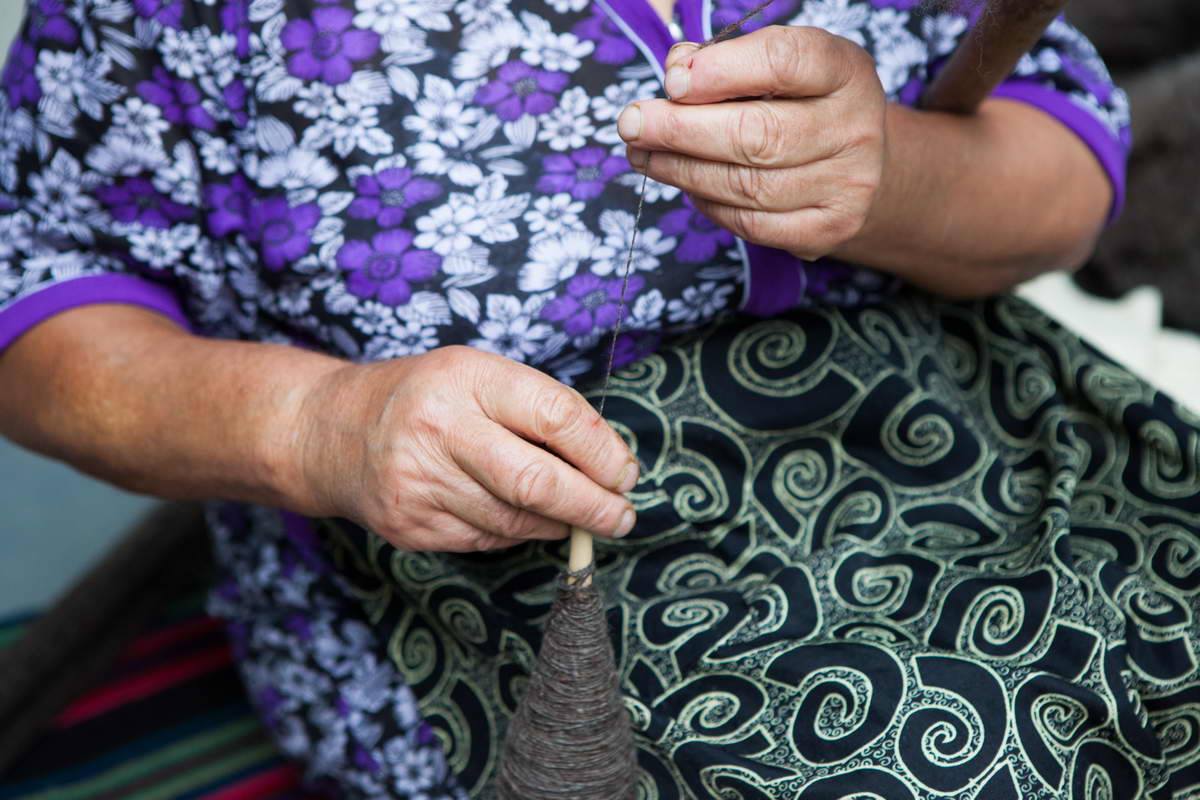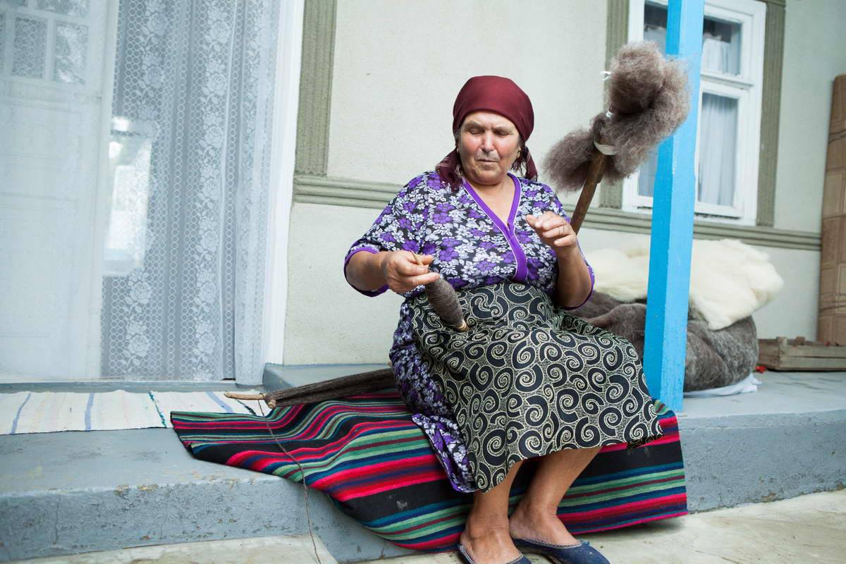 Ștefana Chimineț în timpul torsului. Imagine de Roman Friptuleac